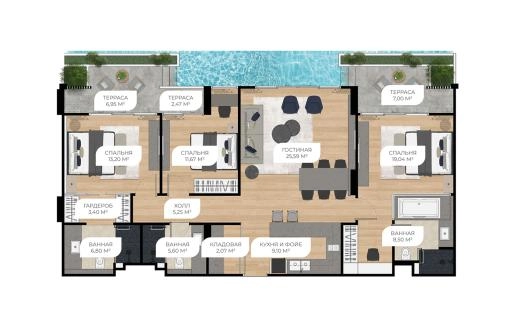 3-Zimmer-Apartments: Fläche 120,9 m²;