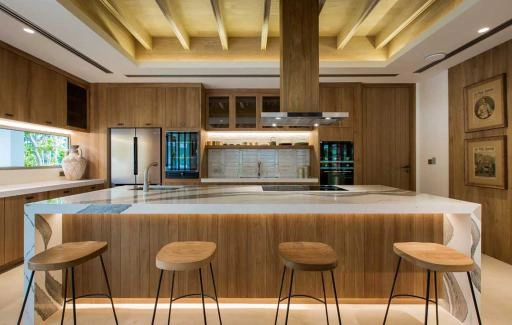 Unique elements: Thai teak, imported stone, Lutron automation systems, Sonos and B&W audio systems.