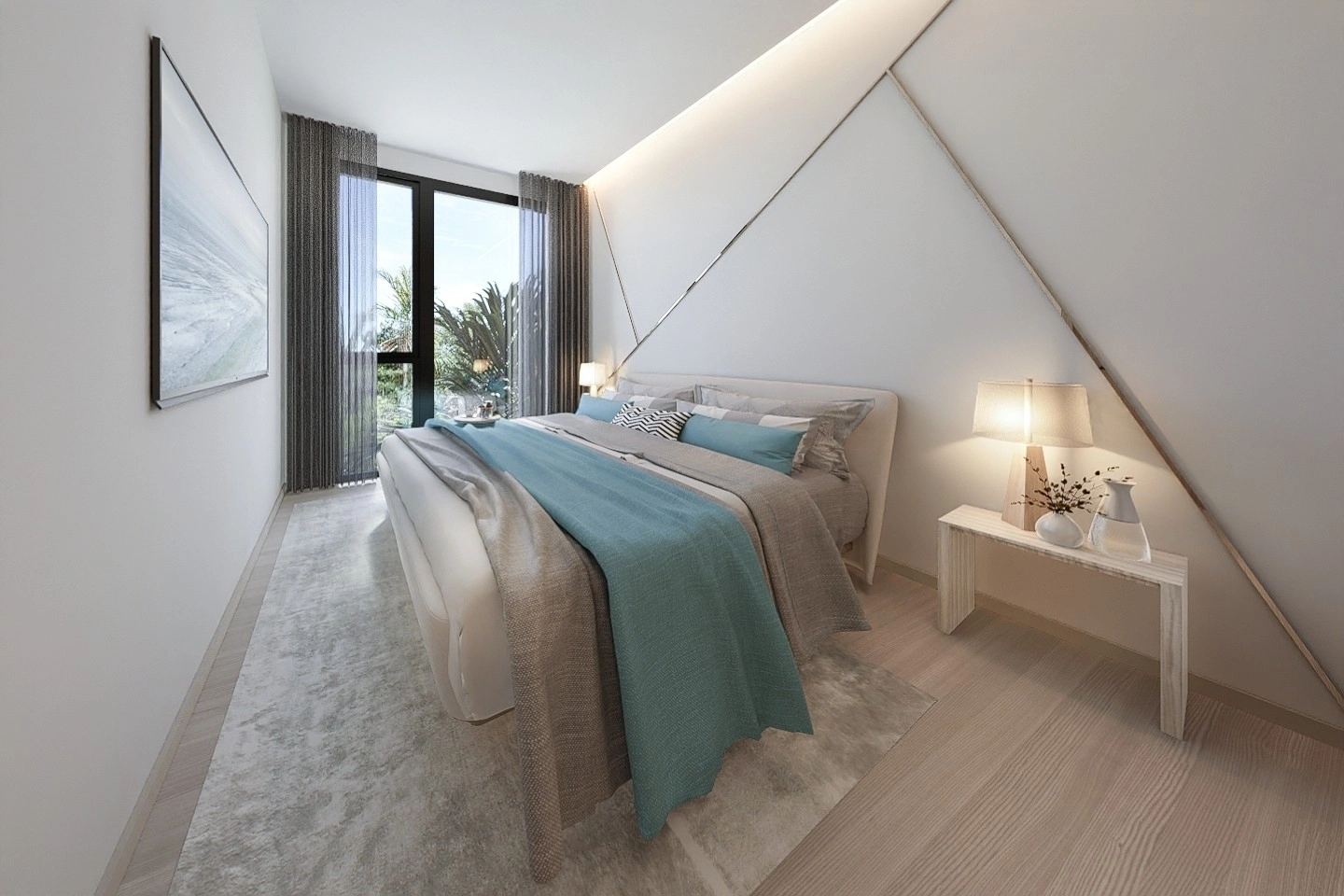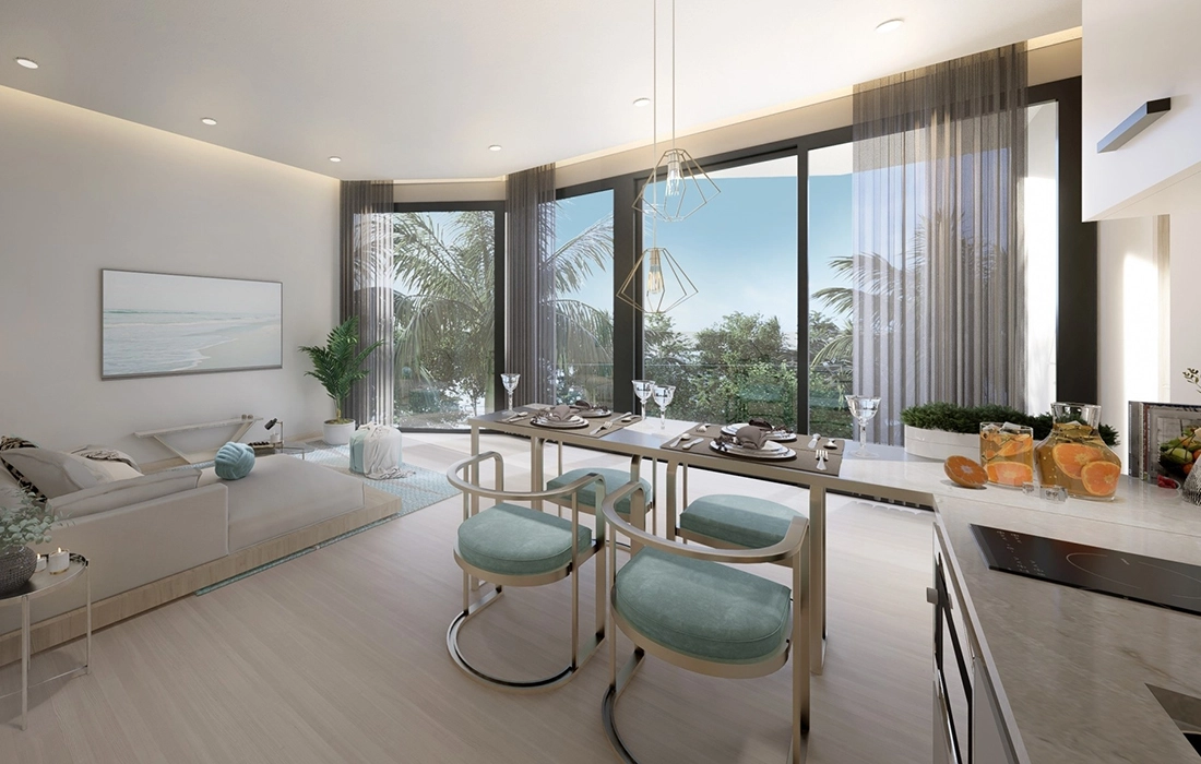 Комплекс состоит из одного 8-этажного здания, включающего 213 жилых и гостиничных единиц. Планировки варьируются от студий до апартаментов с одной и двумя спальнями, с возможностью объединения квартир для создания более просторных помещений. Общие удобства включают различные бассейны, детский клуб, игровые площадки, тренажерный зал, сауну, спа, ресторан и трансфер до пляжей.