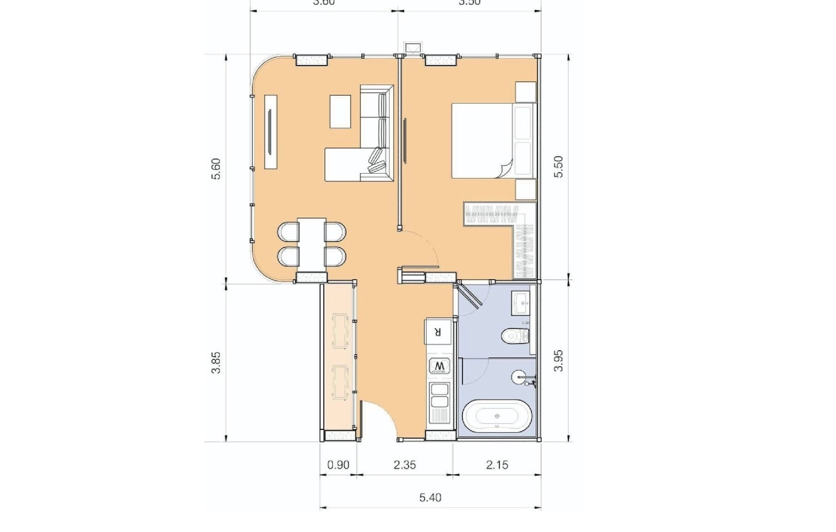 อพาร์ตเมนต์หนึ่งห้องนอนประเภทมุม #321