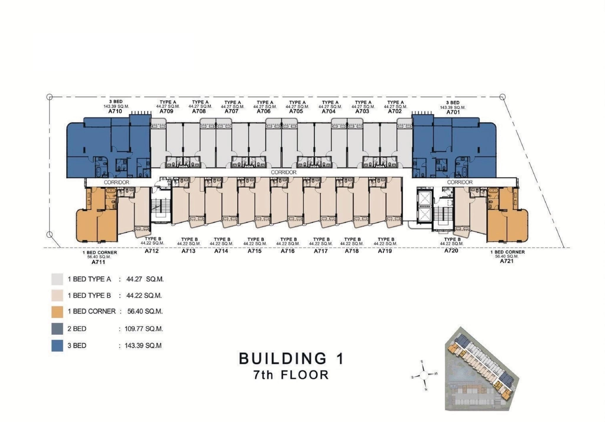 อพาร์ตเมนต์แบบหนึ่งห้องนอนประเภท B #719