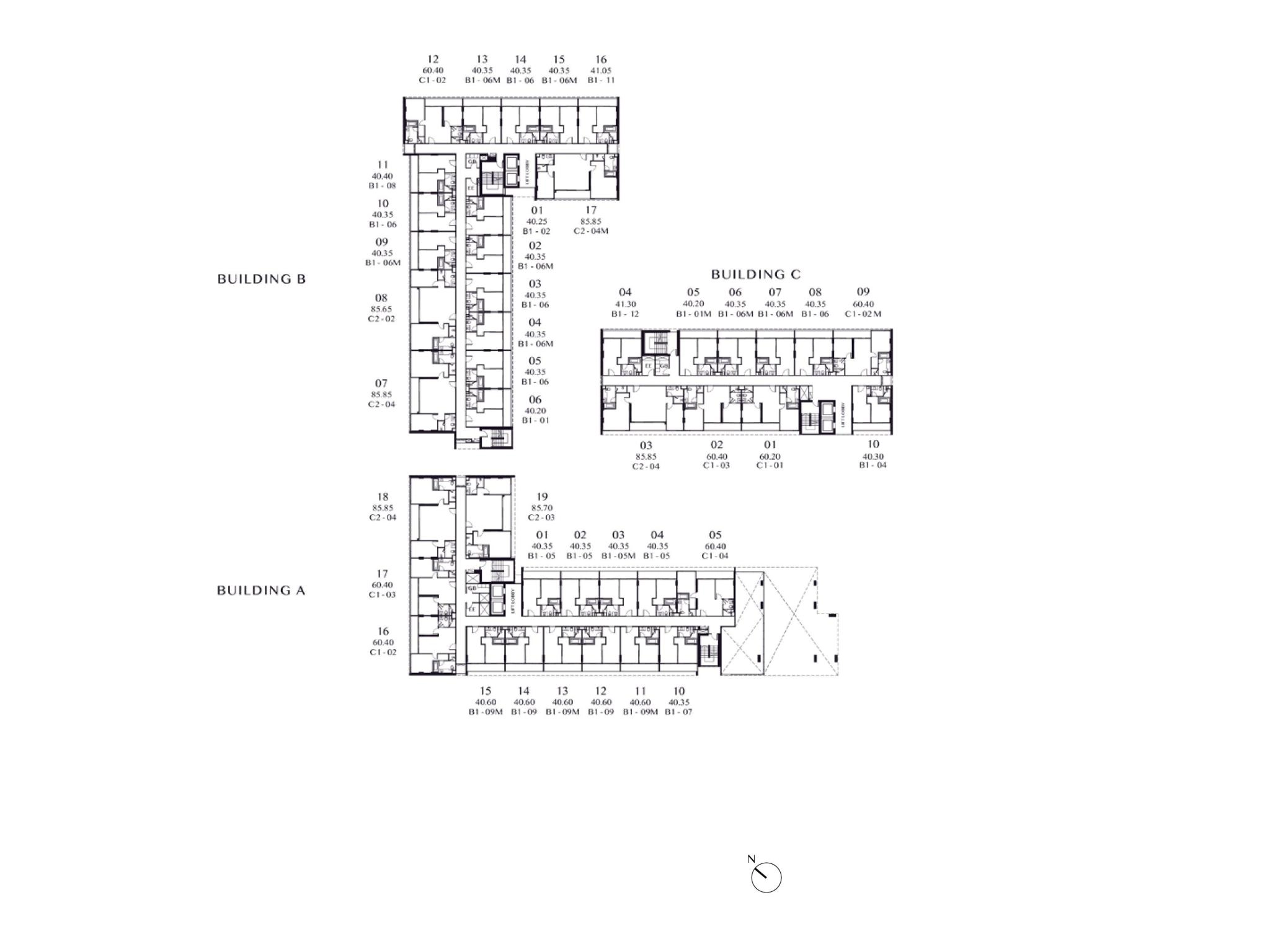 อพาร์ตเมนต์แบบสองเตียงประเภท C2 #B217