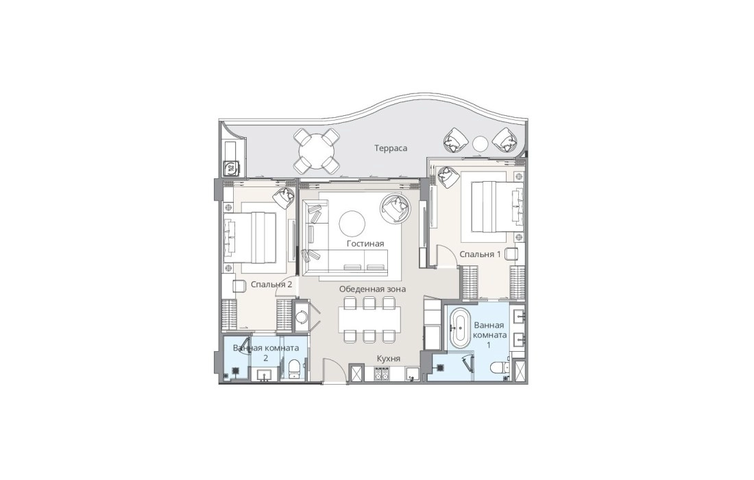 อพาร์ตเมนต์แบบสองห้องนอนประเภท 2B-B (M) #5403