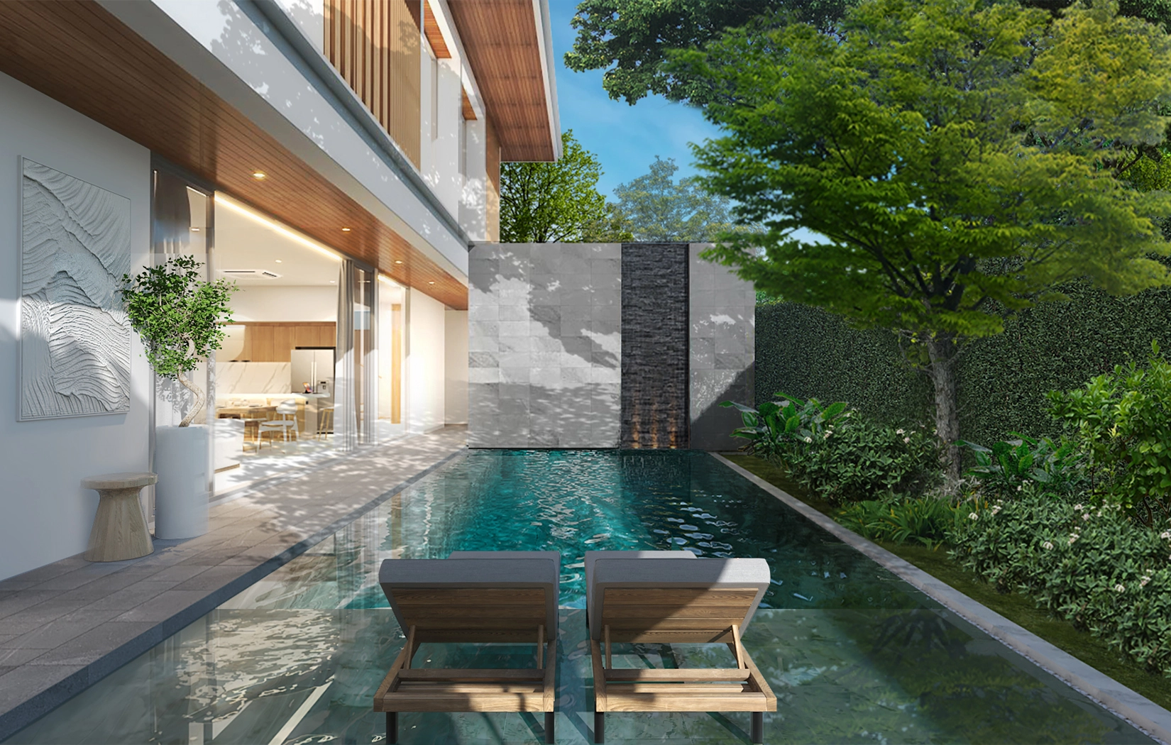 คุณสมบัติ: วิลล่าแต่ละหลังมีสระว่ายน้ำส่วนตัว สวน และเฉลียงกว้าง
