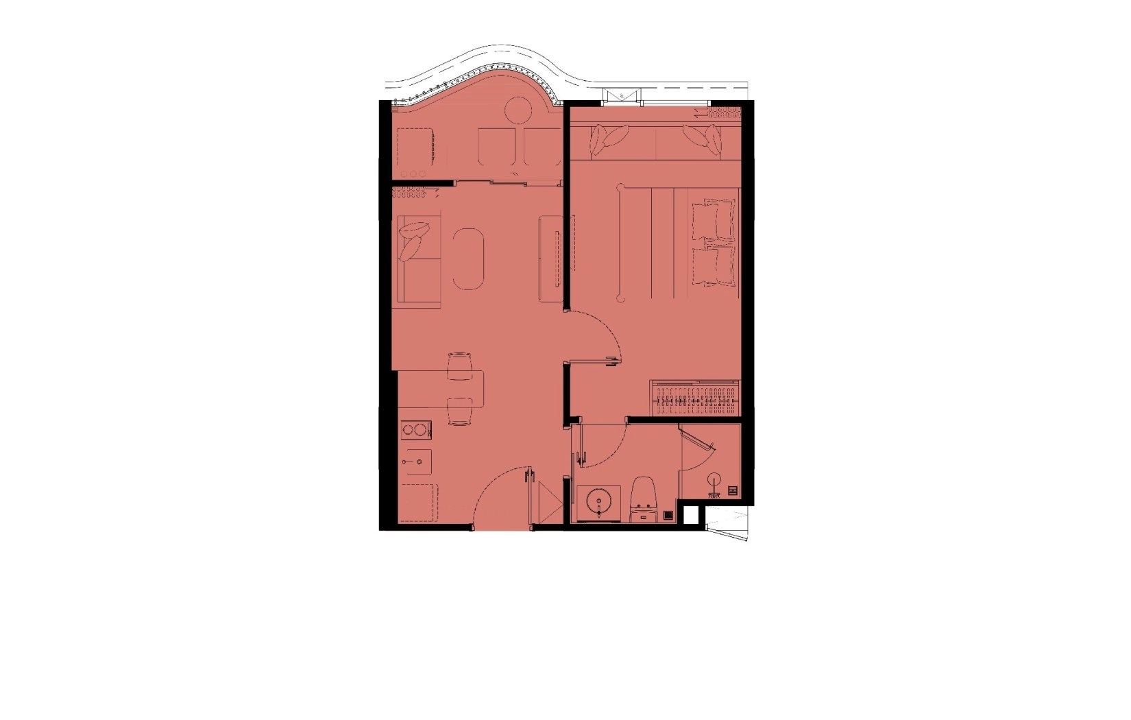 ห้องสตูดิโอประเภท L41 m2 เหลืออยู่ 1 ประโยค