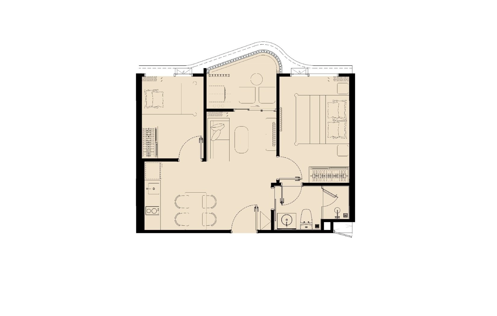 อพาร์ตเมนต์แบบหนึ่งห้องนอนประเภท S27 m2 ไม่มีข้อเสนอ