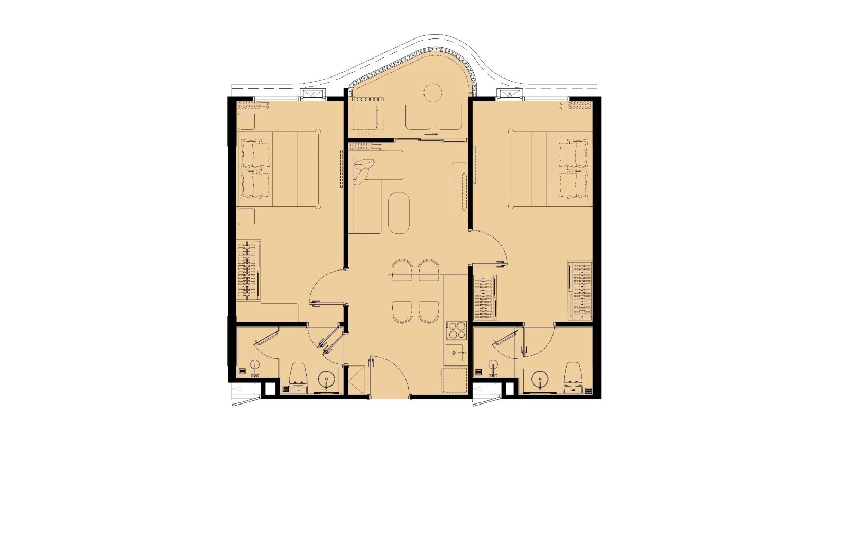 อพาร์ตเมนต์ขนาดสองห้องนอนประเภท 2BPL-198 m2 เหลืออยู่ 4 ประโยค